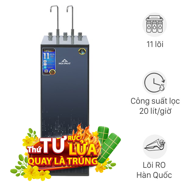 Máy lọc nước Hòa Phát HPN666 tủ đứng thon gọn, nhỏ gọn với 11 lõi lọc. Nút vặn dễ dùng, cung cấp 3 chế độ nóng, nguội, lạnh tiện lợi. Máy lọc nước máy chuẩn QCVN 02, cho nước đầu ra đạt QCVN 6-1 uống ngay, được thiết kế để tiết kiệm không gian hiệu quả cho gia đình.