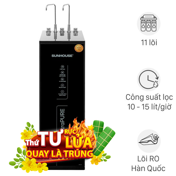 Máy có 11 lõi lọc, tăng cường khả năng lọc, bổ sung khoáng chất có lợi cho sức khỏe. Máy có ba chế độ nóng, nguội, lạnh đáp ứng đa dạng nhu cầu sử dụng hàng ngày. Công suất lọc lớn (15-20 lít/giờ) đảm bảo cung cấp đủ nước cho gia đình. Nước thải có thể tái sử dụng, giúp tiết kiệm hiệu quả.