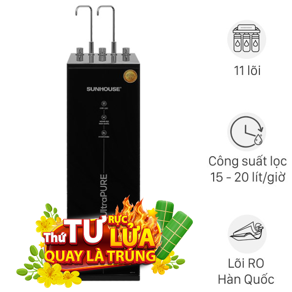 Máy lọc nước Sunhouse SHA76623KL tủ đứng gọn nhẹ, màu đen trắng hiện đại với 11 lõi lọc. Cung cấp 3 chế độ nóng, nguội, lạnh tiện lợi từ 2 vòi riêng biệt. Lọc nước máy QCVN 01-1 khuyến cáo, cho nước ra QCVN 6-1 uống ngay, dễ bố trí không gian gia đình nhờ kiểu dáng thon gọn.