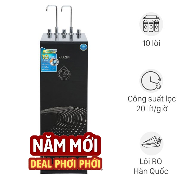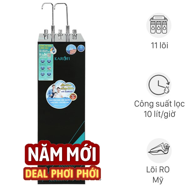 Máy lọc nước RO Hydrogen Karofi KAD-D66 11 lõi nổi bật với kiểu dáng sang trọng, thiết kế 2 vòi lấy nước cùng 3 chế độ nước tiện lợi, sẵn sàng đáp ứng nhu cầu sử dụng nước hằng ngày của người dùng. Vỏ máy được làm từ thép sơn tĩnh điện giúp bảo vệ máy an toàn, chống bám bẩn hiệu quả.