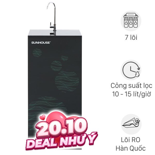 Máy lọc nước Sunhouse này cho tỷ lệ lọc - thải là 5/5. Điều này đồng nghĩa với việc nếu bạn cho 10 lít nước vào máy lọc thì sẽ được 5 lít nước tinh khiết dùng để uống và 5 lít nước bẩn được thải ra ngoài.