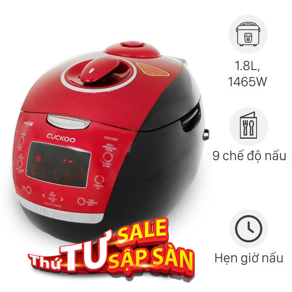 Ở vị trí thứ 5 là nồi cơm áp suất cao tần Cuckoo 1.8 lít CRP-HUS1000F có thiết kế vỏ ngoài màu đỏ đen độc đáo, bắt mắt, góp phần làm nổi bật không gian bếp. Nồi có dung tích 1.8 lít nên đáp ứng được nhu cầu sử dụng cho gia đình có từ 4 - 6 thành viên.
