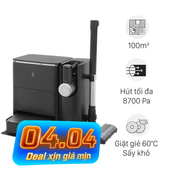 Trạm sạc đa năng OMNI tự động giặt, sấy giẻ lau bằng khí nóng 45°C, đổ rác và bổ sung nước sạch, giúp tiết kiệm thời gian và công sức. Thiết kế mỏng 98 mm dễ dàng di chuyển vào gầm thấp, pin 6.400 mAh cho thời gian hoạt động lên đến 200 phút.