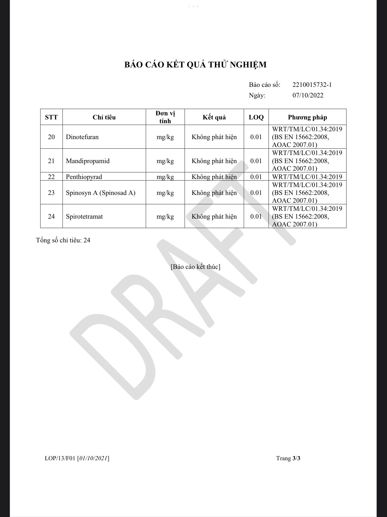 NƠI TRỒNG: Nhà màng số BRV-4K.00055 Nông hộ liên kết Trần Thanh Liêm