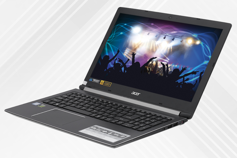 Bề mặt nhôm vân xước thời trang kết hợp với những đường viền Diamond Cut mạnh mẽ tạo nên sự ấn tượng trong thiết kế của laptop Acer Aspire A715 72G.