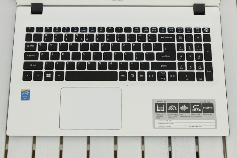 Vỏ máy Acer Aspire E5 573 được làm từ chất liệu nhựa. Phần bàn phím tạo sự khác biệt rõ rệt mang phong cách thiết kế sang trọng và sự cải tiến về bàn phím di chuột (touchpad) hỗ trợ “đa điểm” giúp bạn dễ dàng thực hiện các thao tác như: phóng to, thu nhỏ, tắt hoặc chuyển đổi các cửa sổ hiển thị, … Kích thước của máy Dài 381.6mm – Ngang 256 mm – Dày 29.2mm và trọng lượng 2.14 kg thì bạn có thể mang theo bất cứ đâu.