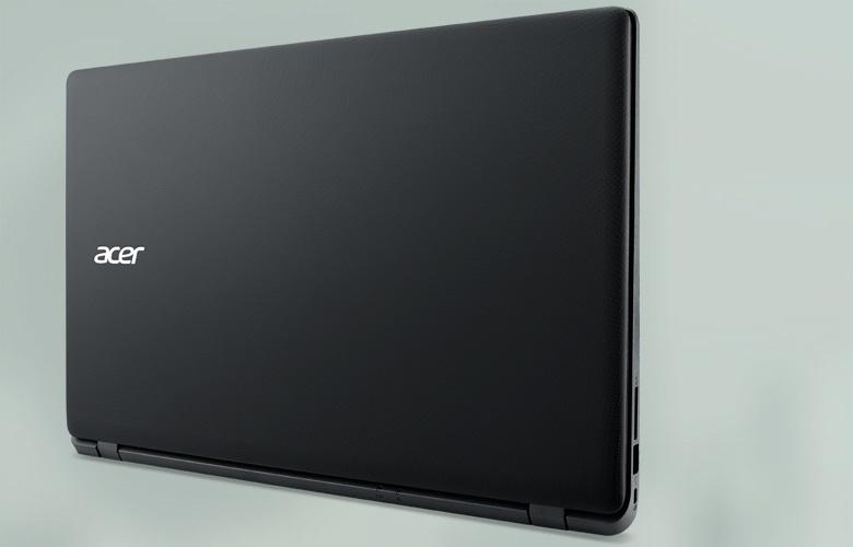 Aspire ES1-511 có lớp vỏ màu đen bóng đơn giản và sang trọng. Logo Acer nằm về một phía tạo điểm nhấn ở mặt ngoài. Với độ dày 28mm và nặng 2.4kg, ES1-511 có lẽ chưa đạt đến tiêu chuẩn về độ gọn nhẹ của các loại laptop trên thị trường hiện nay, nhưng nếu sử dụng lâu, bạn cũng sẽ không cảm thấy quá khó chịu về điều này.
