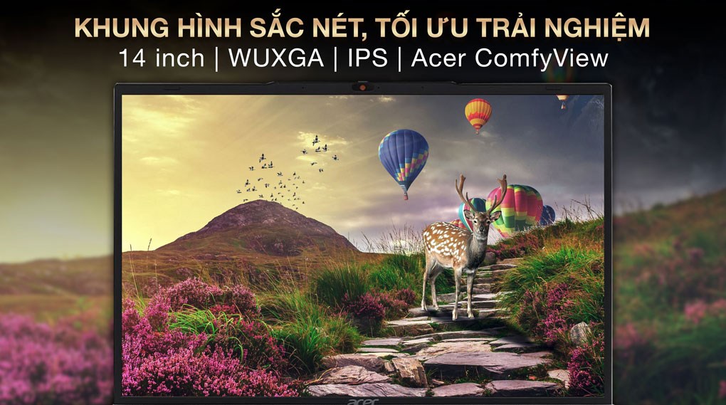 Acer Aspire Lite AL14 sở hữu màn hình 14 inch với độ phân giải WUXGA (1920 x 1200), mang đến hình ảnh sắc nét và chi tiết. Tấm nền IPS cho góc nhìn rộng, màu sắc trung thực, không bị biến đổi khi nhìn từ các góc khác nhau. Độ phủ màu 45% NTSC đáp ứng tốt nhu cầu sử dụng hàng ngày và chỉnh sửa ảnh cơ bản.