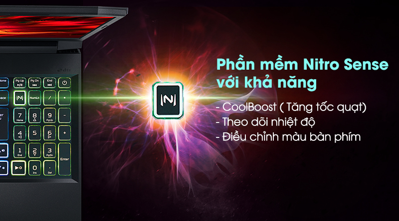 Laptop được trang bị phím tắt Nitro Sense giúp bạn truy cập vào phần mềm kiểm soát nhiệt độ Nitro Sense nhanh chóng chỉ sau một nhấn, bạn có thể kiểm soát nhiệt độ và tiến hành tản nhiệt một cách nhanh nhất.