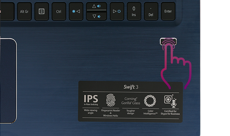 Acer Swift trang bị bàn phím được thiết kế phù hợp cho việc soạn thảo, touchpad rộng và nhạy cho trải nghiệm dùng tốt hơn. Bên cạnh đó, bàn phím được trang bị đèn nền để dễ dàng sử dụng trong không gian ánh sáng yếu.