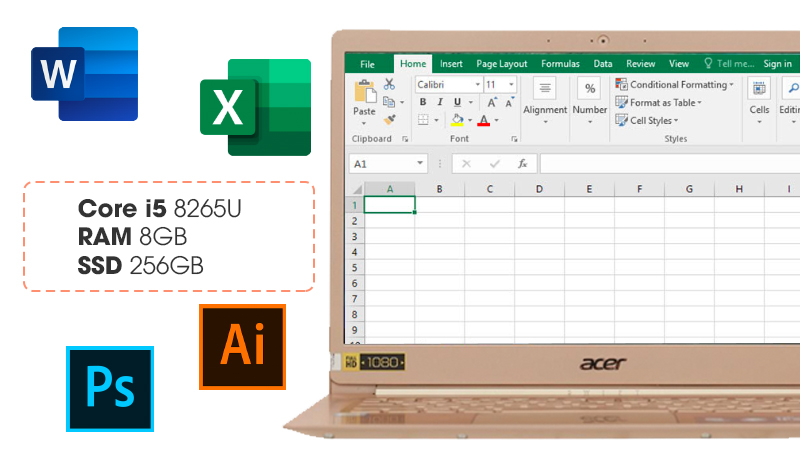 Bộ xử lý Intel Core i5 thế hệ thứ 8 xử lý tốt các ứng dụng văn phòng. RAM 8 GB hỗ trợ các ứng dụng phục vụ tốt nhất cho công việc của bạn như thiết kế ảnh 2D với Photoshop hay Corel,... tuy nhiên đối với ứng dụng Ai thì có thể máy sẽ xảy ra hiện tượng đứng hoặc lag.