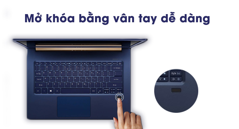 Sử dụng hệ thống cảm biến vân tay kết hợp Window Hello, Acer Swift 5 SF5 giúp bạn mở khóa nhanh chóng hơn so với sử dụng mật khẩu thông thường và đồng thời tăng khả năng bảo mật.