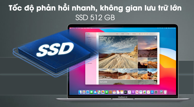Ngoài ra, laptop với ổ cứng SSD 512 GB giúp bạn có thể truy cập các ứng dụng nặng một cách nhanh chóng, tiết kiệm điện thời gian khởi động máy, nhờ đó công việc được xử lý kịp thời không bị gián đoạn. Đồng thời, cung cấp cho bạn không gian lưu trữ đủ để bạn lưu trữ các tài liệu, file psd, bộ phim hoặc bài hát mình yêu thích nhờ bộ nhớ này.