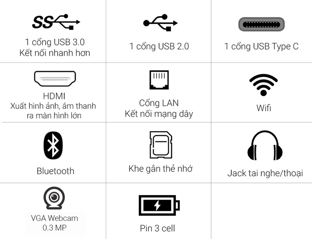 Asus A540UP tích hợp đầy đủ cổng kết nối giúp bạn xuất hình ảnh lên máy chiếu, màn hình ngoài qua cổng HDMI, sao chép dữ liệu qua cổng USB, hỗ trợ chuẩn USB tốc độ cao USB 3.0 và đa năng USB Type C tiên tiến.