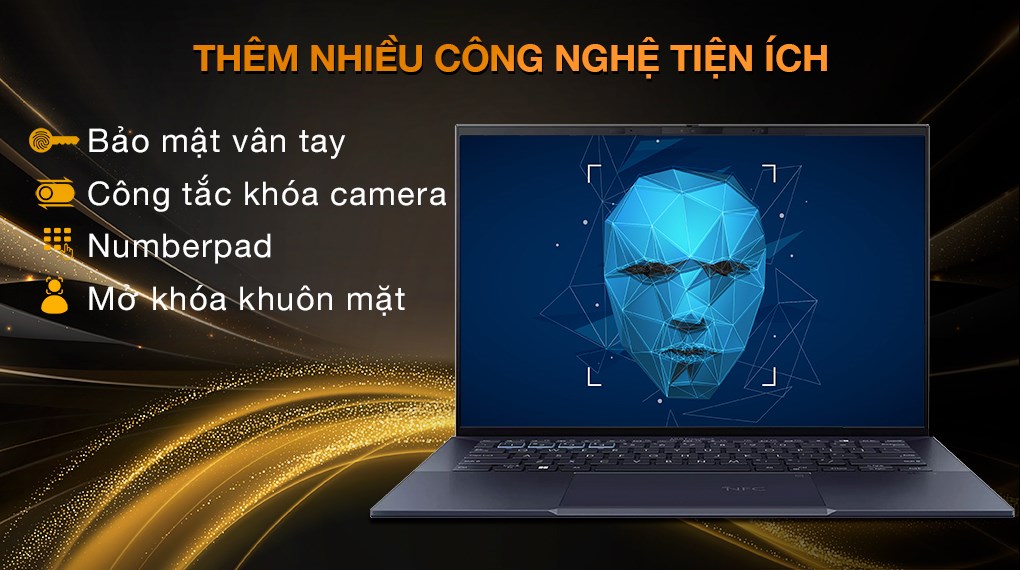 Laptop Asus ExpertBook đến với sự tiện ích vượt trội, mang đến một trải nghiệm trực tuyến hoàn hảo cho người dùng. Với Webcam Full HD và Camera IR tích hợp sẵn, bạn có thể dễ dàng tham gia các cuộc họp trực tuyến và an tâm khi không sử dụng nhờ công tắc khoá camera. Bên cạnh đó, bảo vệ quyền riêng tư được đặt lên hàng đầu với các tính năng bảo mật như bảo mật vân tay và mở khóa khuôn mặt.