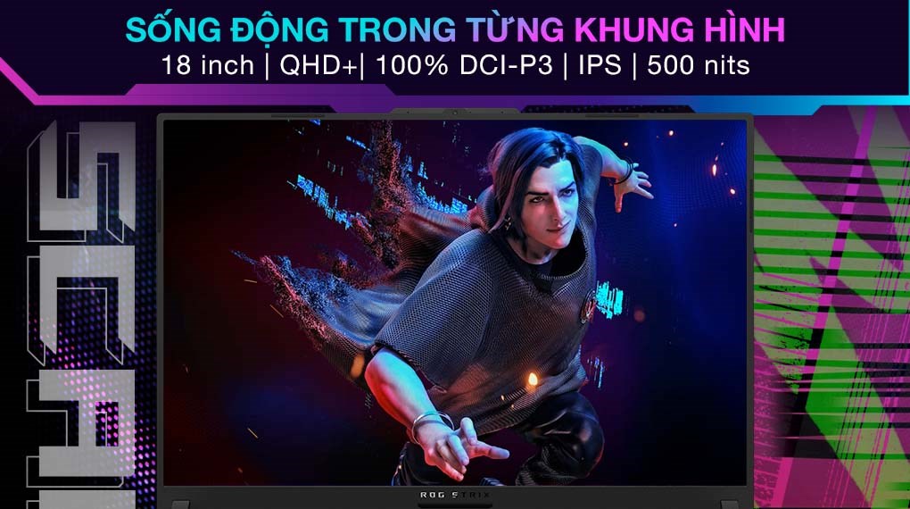 Ấn tượng khi sở hữu khung hình 18 inch phối hợp cùng độ phân giải QHD+ (2560 x 1600) đưa đến một không gian siêu rộng rãi với sự rõ nét và chi tiết cao, giúp mọi hình ảnh và đồ hoạ trở nên sống động. Bạn có thể tận hưởng tường tận những điểm mù trong trò chơi, từ cảnh đẹp tới các yếu tố nhỏ nhất của các tác phẩm nghệ thuật số. Màn hình tuân theo chuẩn ROG Nebula HDR, hỗ trợ độ sáng lên đến 500 nits, mang đến trải nghiệm xem HDR đặc sắc.