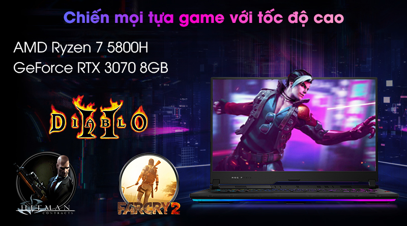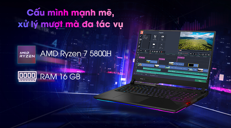 Được tích hợp chip xử lý AMD Ryzen 7 5800H Asus Rog mang lại hiệu năng cao, nâng cấp về tốc độ xử lý và tiết kiệm điện với 8 nhân, 16 luồng, có tần số cơ bản là 3.2 GHz và đạt tới xung nhịp tối đa là 4.4 GHz. Bạn có thể trải nghiệm làm việc hiệu quả đáp ứng các nhu cầu từ công việc văn phòng cơ bản đến các công việc về thiết kế đồ họa và chơi game thoải mái.