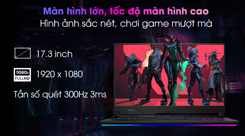 Nhờ sở hữu màn hình cực lớn 17.3 inch với độ phân giải Full HD, laptop mang đến cho bạn một sự khác biệt trong những trận chiến game bởi màn hình vô cùng sắc nét, giúp bạn trải nghiệm được không gian cực kỳ thú vị. Ngoài ra, tấm nền IPS sẽ giúp tái hiện hình ảnh rõ ràng, màu sắc chính xác với góc nhìn rộng lên đến 178 độ.