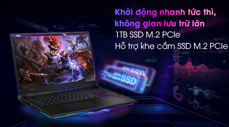 Ổ cứng 1 TB SSD M.2 PCIe, hỗ trợ khe cắm SSD M.2 PCIe cho bạn không gian cực kỳ rộng lớn để lưu trữ phim ảnh hay các tựa game yêu thích, các file tài liệu nặng mà không lo đầy bộ nhớ. Ổ cứng SSD này sẽ cho laptop tốc độ phản hồi cực nhanh qua các click chuột hay khởi động máy, mở các ứng dụng một cách nhanh chóng.