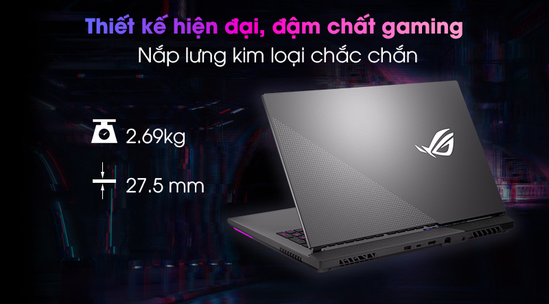 Được thiết kế theo xu hướng hiện đại toát lên phong cách mạnh mẽ, laptop Asus Rog đã thể hiện được vẻ cool ngầu của mình bởi các đường cắt và biểu tượng tinh tế tô điểm bên ngoài. Tuy là một chiếc laptop gaming nhưng cân nặng của máy không quá nặng, chỉ 2.69 kg và có độ dày 27.5 mm, dễ dàng cất gọn để di chuyển và làm việc mọi nơi.