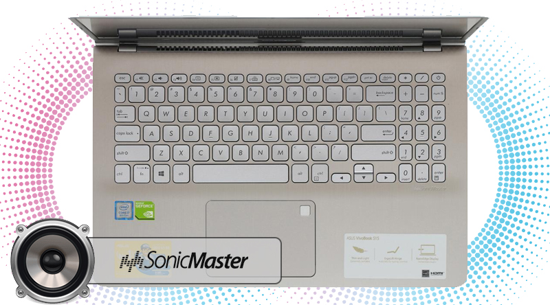 Công nghệ âm thanh ASUS SonicMaster mang lại âm thanh trong trẻo nhờ khả năng loại bỏ tiếng ồn hiệu quả, độ bass ổn định cùng hệ thống âm thanh vòm sinh động.