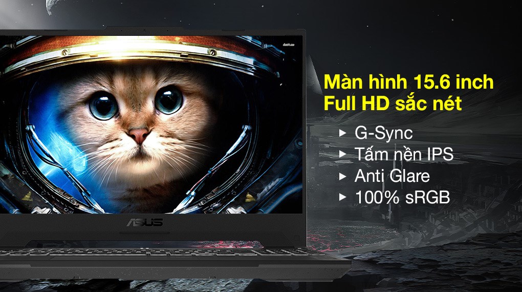 Màn hình rộng 15.6 inch trên Asus TUF Gaming có độ phân giải Full HD (1920 x 1080) sử dụng tấm nền IPS mang đến không gian giải trí rộng rãi và góc nhìn rộng, tạo điều kiện tối ưu để bạn thưởng thức phim ảnh và chơi game một cách trọn vẹn. Khung hình rõ nét và chi tiết sẽ đưa bạn chìm đắm trong thế giới ảo với trải nghiệm chân thực và sống động.