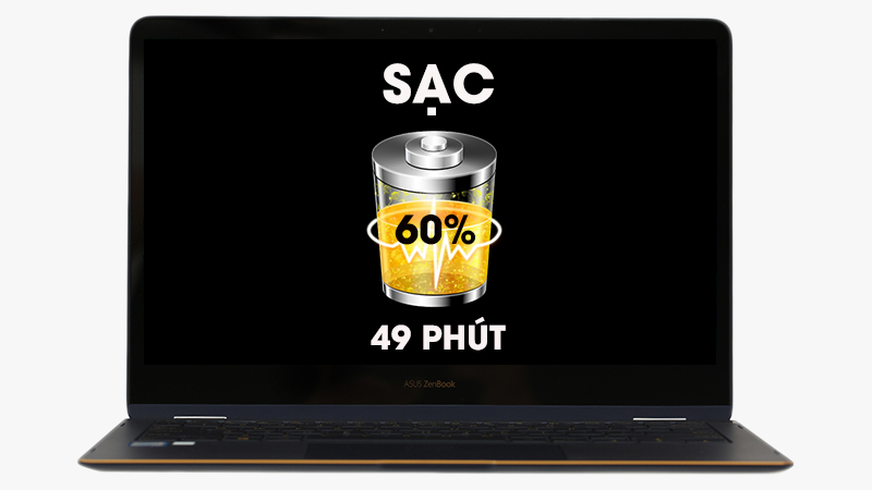 UX370UA-C4217TS có thời lượng pin kéo dài cả ngày (lên đến 6-8 giờ). ASUS cũng đã bổ sung thêm công nghệ sạc nhanh cho phép sạc lên 60% dung lượng pin chỉ trong 49 phút.