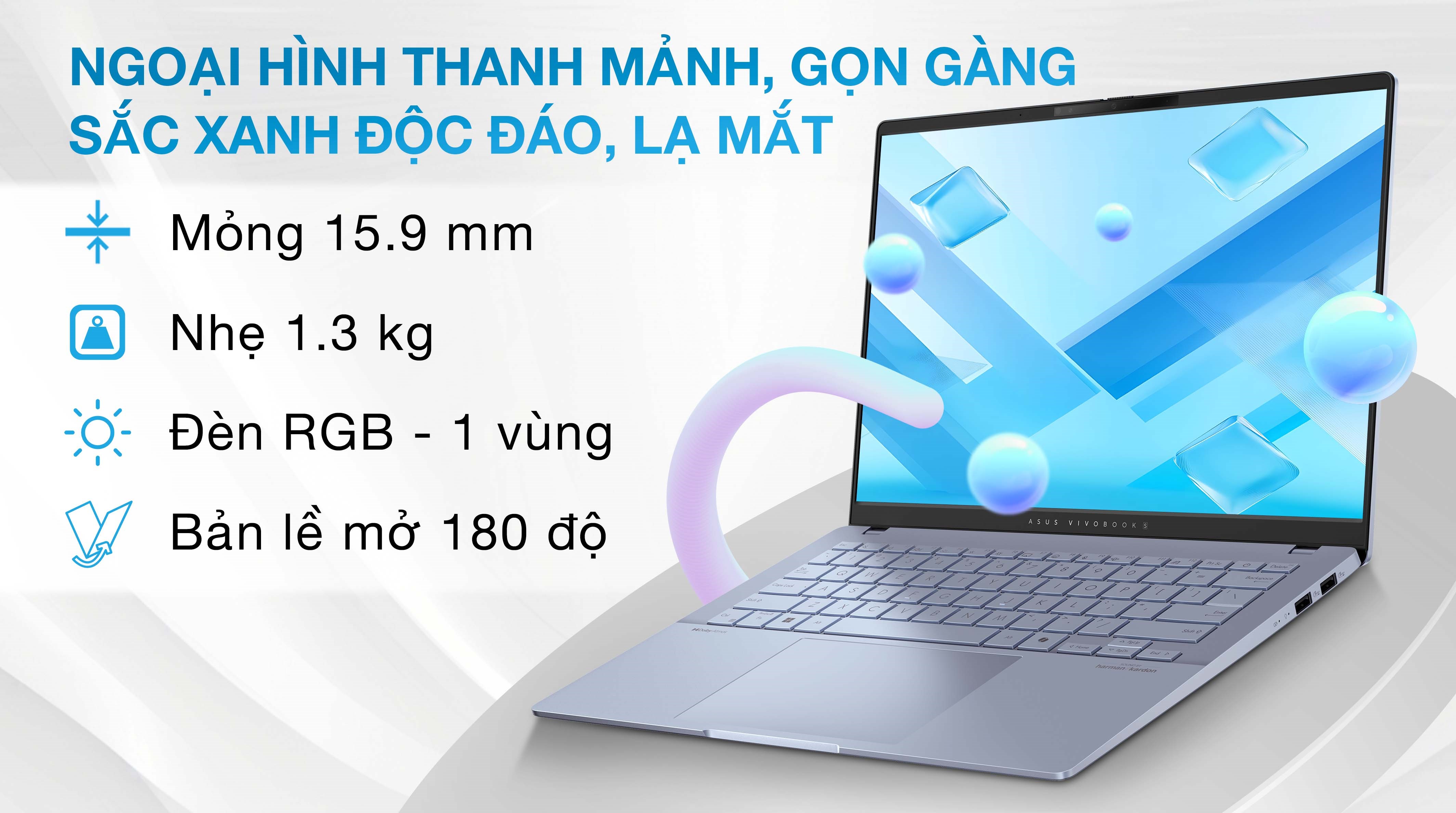 Với khung nhôm bền bỉ và khối lượng chỉ 1.3 kg, Vivobook S 14 dễ dàng theo bạn đến mọi nơi, từ văn phòng, lớp học đến quán cà phê. Lớp vỏ với màu sắc thời thượng không chỉ tạo cảm giác hiện đại mà còn thể hiện cá tính của người dùng.