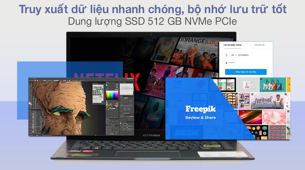 Truy cập và vận hành máy một cách nhanh chóng nhờ ổ cứng SSD 512 GB NVMe PCle, đồng thời cho phép người dùng lưu trữ hàng loạt dữ liệu yêu thích với không gian rộng lớn.