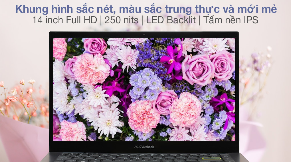 Màn hình 14 inch viền mỏng có độ phân giải Full HD (1920 x 1080) và độ sáng màn hình 250 nits mang đến cho người dùng không gian hình ảnh chân thật, rõ nét ở những nơi có điều kiện ánh sáng bình thường như trong phòng học, tại nhà,...