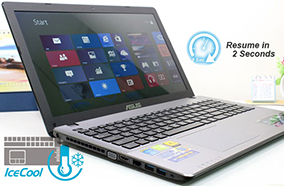 | Asus cũng không quên trang bị thêm cho Asus X550LB những công nghệ tiên tiến của hãng như Icecool có tác dụng làm mát ở những nơi người dùng thường xuyên tiếp xúc nhằm tạo cảm giác thoải mái khi sử dụng, công nghệ Instant On cho phép chuyển từ chế độ ngủ sang chế độ làm việc chỉ trong vòng 2 giây. | Với công nghệ âm thanh độc quyền SonicMaster của Asus kết hợp cùng hệ thống loa chất lượng bên trong và phần mềm tùy chỉnh âm thông minh, Asus X550LB sẽ mang đến những trải nghiệm âm thanh thú vị cho bạn đặc biệt khi xem phim, nghe nhạc, chơi game. | Laptop Asus X550LB sử dụng pin 4-cell kết hợp cùng công nghệ tiết kiệm điện năng ULV (Ultra Low Voltage) trên chip xử lý thế hệ mới sẽ đem lại cho sản phẩm này một thời lượng sử dụng lâu dài và ổn định khoảng gẩn 3giờ. Chính vì vậy, bạn có thể yên tâm về thời lượng pin của Asus X550LB. |