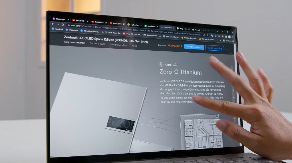 Màn hình hỗ trợ cảm ứng của Zenbook 14X OLED linh động hơn trong các tình huống sử dụng, tạo thêm được sự tiện dụng khi bạn có thể thao tác trực tiếp trên màn hình mà không cần đến bàn di chuột, lướt thông tin trên trang web cũng thuận tiện hơn rất nhiều. Nhưng với hai tuần trải nghiệm mình không dùng nhiều đến tính năng này, do là màn hình cảm ứng nên trong màn hình nếu để ý kỹ ta sẽ thấy có một lớp ở giữa hiện lên như những điểm ảnh nhỏ, thể hiện rõ hơn trên nền trắng.