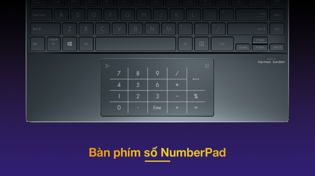 Touchpad được tích hợp bàn phím số đầy sáng tạo cho bạn thao tác nhập số ngay trên bàn di chuột một cách tiện lợi nhất.