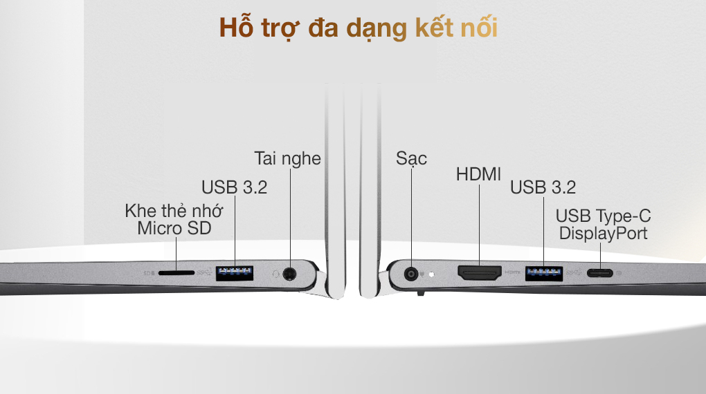 Dọc hai bên thân laptop Dell là dãy đa dạng các cổng kết nối bao gồm USB 3.2, HDMI, Jack tai nghe 3.5 mm, USB Type-C (Power Delivery and DisplayPort) và khe thẻ nhớ Micro SD giúp việc liên kết trở nên dễ dàng bạn có thể truyền dữ liệu, chia sẻ hình ảnh nhanh chóng với các thiết bị ngoại vi như loa, màn hình rời, máy chiếu, USB,... mà không cần mua thêm adapter chuyển đổi vừa rườm rà vừa tốn kém.
