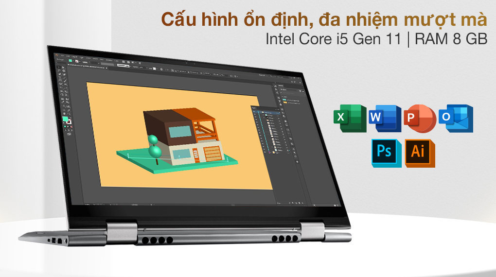 Sở hữu CPU Intel Core i5 Tiger Lake 1155G7 có cấu trúc 4 nhân 8 luồng, sản xuất trên tiến trình 10 nm SuperFin tiết kiệm năng lượng tối đa. Mức xung nhịp trung bình là 2.50 GHz và đạt mức cao nhất là 4.5 GHz ở chế độ Turbo Boost giúp bạn xử lý các tác vụ văn phòng, đồ họa hay chơi game một cách mượt mà.