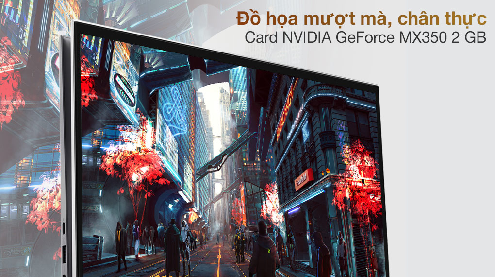 Đi cùng với CPU là GPU NVIDIA GeForce MX350 2 GB mang đến một sức mạnh ổn định để bạn có thể thử sức với các tựa game online như: LOL, PUBG,... Hay thiết kế đồ họa, sáng tạo nội dung, hình ảnh, render video một cách hiệu quả trên các phần mềm như: Photoshop, AI, Figma, Premiere,...