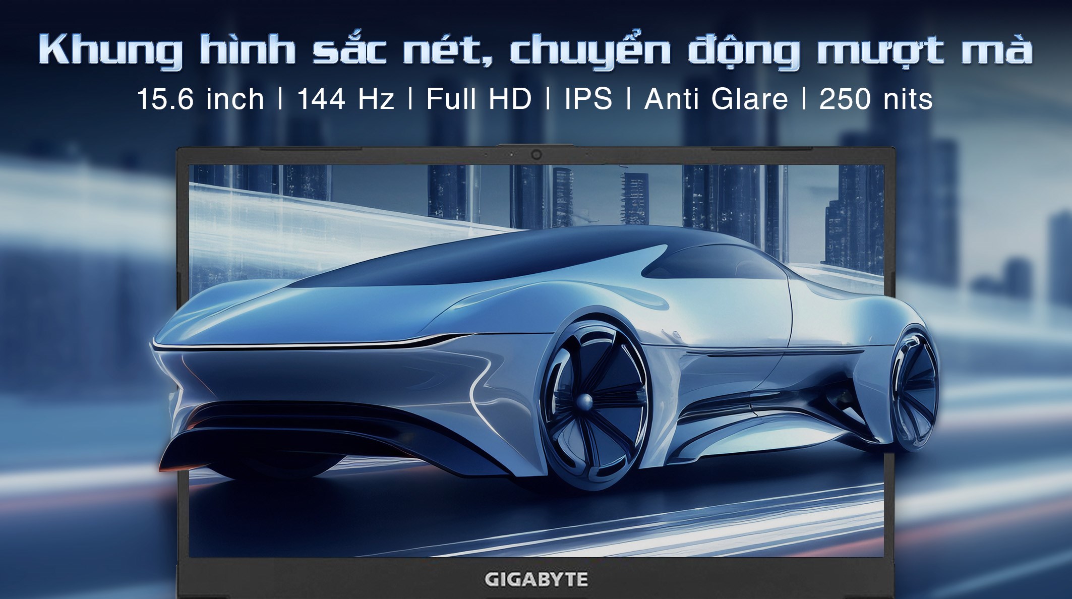 Màn hình là yếu tố cực kỳ quan trọng với cả game thủ và người làm đồ họa. GIGABYTE G5 MF5 sở hữu màn hình 15.6 inch với độ phân giải Full HD (1920 x 1080), mang đến hình ảnh chi tiết và rõ ràng. Tấm nền IPS cung cấp góc nhìn rộng và màu sắc ổn định, trong khi công nghệ chống chói Anti Glare giúp bạn thoải mái sử dụng máy trong môi trường ánh sáng mạnh mà không bị lóa mắt. Độ sáng 250 nits đủ dùng trong điều kiện phòng thông thường.