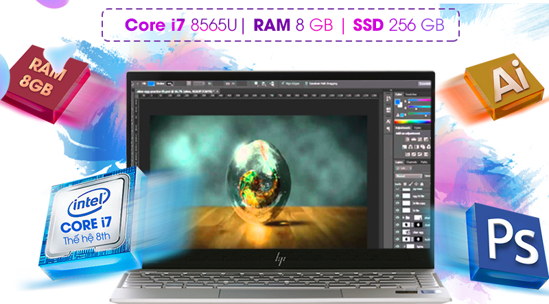 Mang trong mình ổ cứng SSD 256 GB và chip Intel Core i7 thế hệ 8, HP Envy 13 aq0027tu tự tin xử lý các tác vụ văn phòng một cách nhanh chóng.