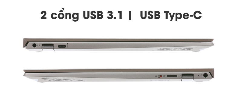 HP Envy 13 aq0027tu mang trong mình 1 cổng USB Type-C siêu nhanh, siêu tiện lợi và 2 cổng USB 3.1 có tốc độ truyền tải dữ liệu cao. Bạn có thể nhanh chóng và thoải mái chuyển đổi dữ liệu giữa các thiết bị điện tử thông qua các cổng kết nối trên.