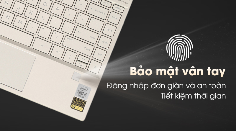 Tương tự như các mẫu máy dòng HP Envy 13, máy được trang bị một cảm biến vân tay có độ nhạy cao, chỉ cần chạm nhẹ để khởi động máy mà không cần nhập mật khẩu như trước, không còn lo ngại bị đánh cắp mật khẩu.