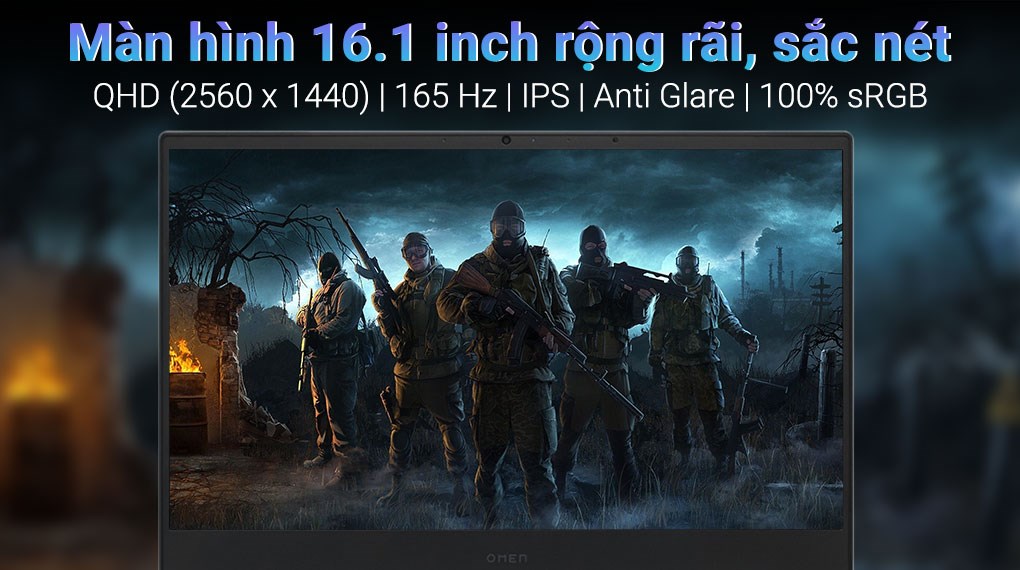 Với màn hình kích thước 16.1 inch, độ phân giải QHD và tần số quét 165 Hz, laptop HP Omen đem đến cho bạn trải nghiệm hiển thị tuyệt vời với hình ảnh chi tiết, màu sắc sống động và tốc độ khung hình chuyển động nhanh hơn trong các tựa game có tính tương tác cao. Ngoài ra, màn hình IPS đạt chuẩn 100% sRGB mang đến khả năng tái tạo màu sắc chính xác trong các tác vụ liên quan đến thiết kế đồ họa và hiệu chỉnh màu sắc chuyên nghiệp.