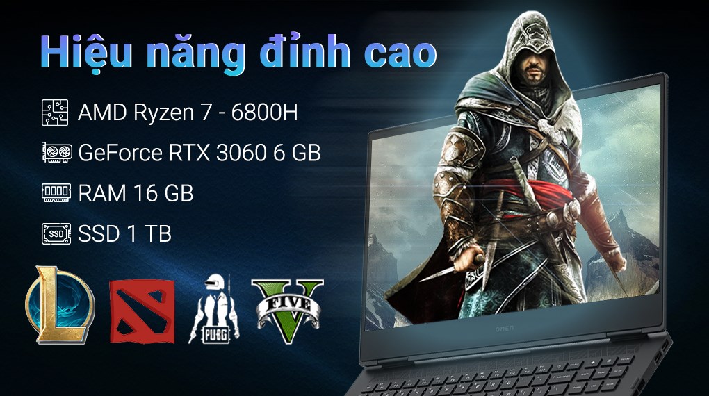 Được trang bị bộ xử lý AMD Ryzen 7 6800H với 8 nhân và 16 luồng có khả năng xử lý đa nhiệm mượt mà cũng như chơi các tựa game nặng ở mức đồ họa cao như Uncharted 4, God of War, Red Dead Redemption 2, Assassin’s Creed Valhalla,... Đi kèm với đó, card đồ họa NVIDIA GeForce RTX 3060 với bộ nhớ VRAM lên đến 6 GB sẽ cho bạn chiến game tuyệt đỉnh, với hiệu suất xử lý đồ họa mạnh mẽ.