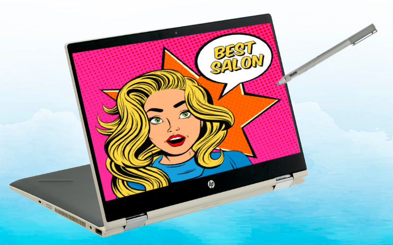 Bút cảm ứng đi kèm giúp các thao tác chuyển đổi slide thuyết trình, thiết kế, vẽ 2D trên Laptop 2 trong 1 HP Pavilion x360 trở nên thuận tiện và đơn giản hơn. Màn hình rộng 14 inch với viền mỏng cho kích thước máy gọn gàng hơn, hình ảnh hiển thị sát cạnh choáng ngợp.
