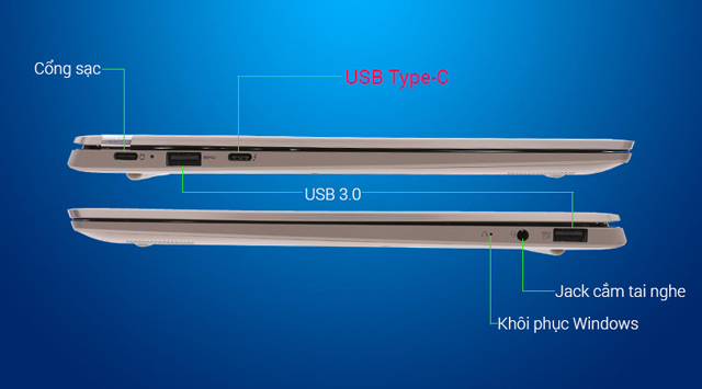 Lenovo IdeaPad 720S sở hữu nhiều cổng kết nối nổi bật, hiện đại: USB 3.0, USB Type-C giúp người dùng sao chép, chuyển đổi dữ liệu nhanh chóng hơn.
