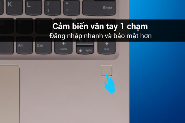 Máy được trang bị cảm biến vân tay và cùng với Windows 10 bản quyền có sẵn, cảm biến sẽ giúp bạn mở khóa máy nhanh chóng bằng Windows Hello mà không cần nhập mật khẩu như cách truyền thống.