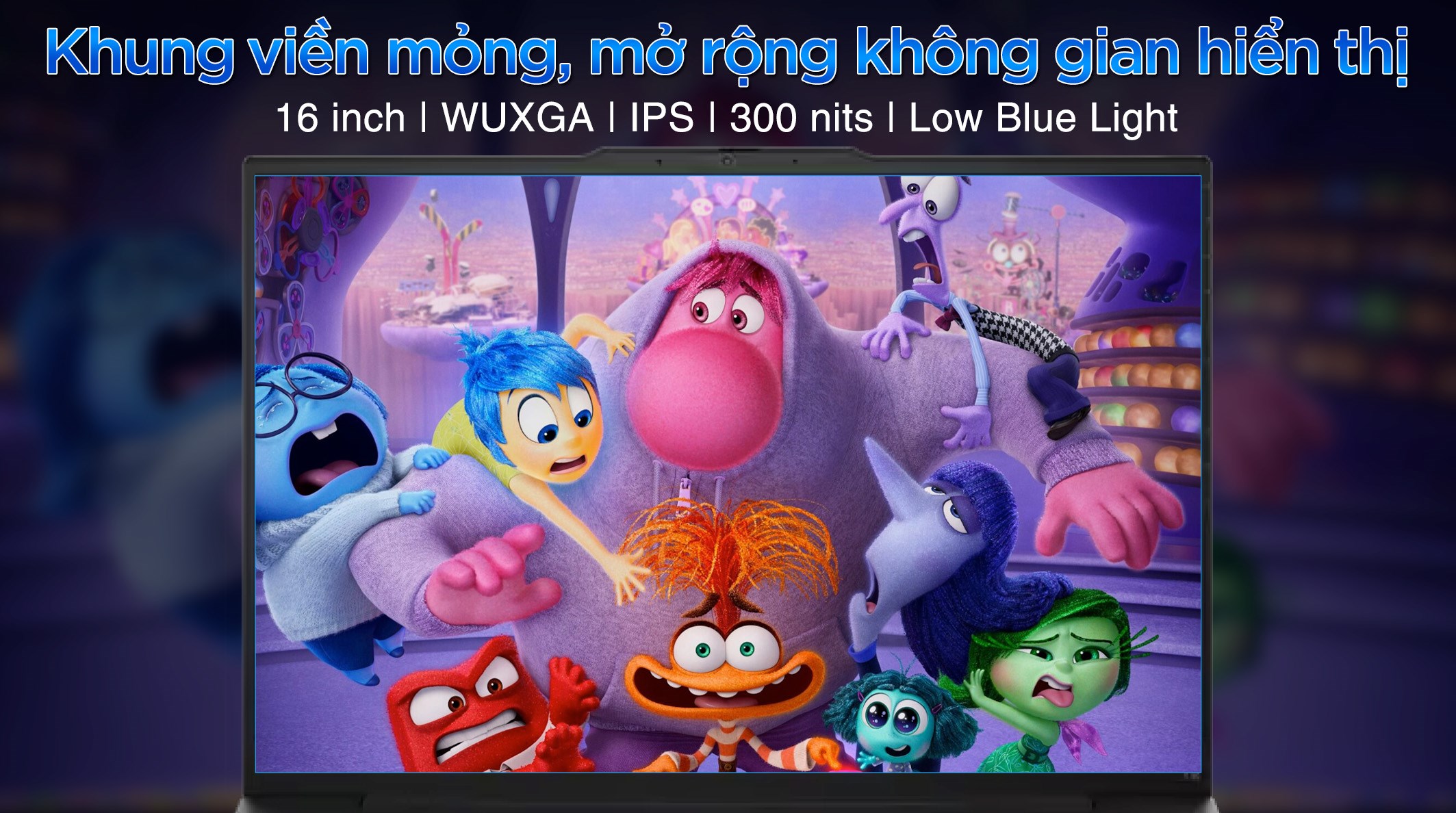 Màn hình 16 inch độ phân giải WUXGA mang đến hình ảnh sắc nét, chi tiết cùng tỷ lệ khung hình 16:10 rộng rãi. Tấm nền IPS giúp cải thiện góc nhìn, trong khi màu sắc hiển thị chân thực và rõ nét, tạo điều kiện tối ưu cho công việc như chỉnh sửa tài liệu, chia màn hình hay giải trí sau giờ làm việc.
