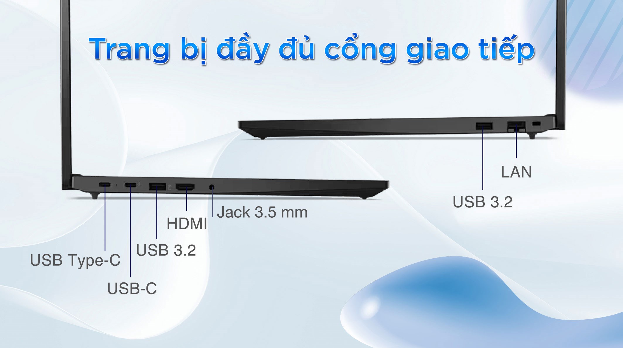 Laptop Lenovo ThinkPad này hỗ trợ đầy đủ các cổng kết nối phổ biến như USB-C, USB 3.2, HDMI,... đảm bảo khả năng liên kết linh hoạt với nhiều thiết bị ngoại vi. Dù làm việc tại văn phòng hay kết nối với các thiết bị trình chiếu ngoài, Lenovo ThinkPad E16 luôn sẵn sàng đáp ứng mọi nhu cầu. Các chuẩn kết nối không dây mới nhất như Wi-Fi 6E và Bluetooth 5.3 đảm bảo đường truyền ổn định, tốc độ cao. Viên pin 47 Wh cung cấp thời lượng sử dụng đủ cho một ngày làm việc hoặc học tập cơ bản. Nhìn chung, đây là một chiếc laptop đáng cân nhắc trong phân khúc.