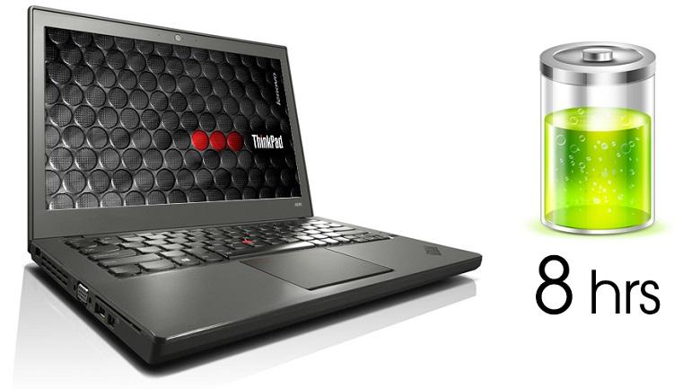 ThinkPad X240 được trang bị đến 2 viên pin bên trong, giúp máy có thời lượng hoạt động gấp đôi laptop thông thường trên trên thị trường, có thể lên đến 8 tiếng liên tục. Mỗi viên pin 3 cell này được thiết kế rời nhau và trong đó chỉ có một thỏi pin là có thể tách rời ra khởi máy. Nhà sản xuất đã sử dụng công nghệ Power Bridge, nhờ đó pin của máy có thể được thay thế dễ dàng với các pin khác có dung lượng cao hơn.
