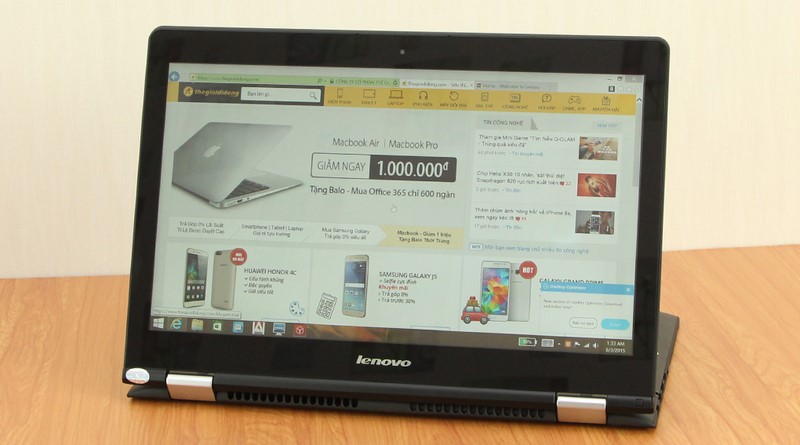 Đặc biệt hơn hết là thiết kế xoay 360 độc đáo giúp biến chiếc laptop của bạn thành máy tính bảng có thể thao tác dễ dàng trong những không gian chật hẹp như khi đi tàu hỏa, máy bay thật tiện lợi.