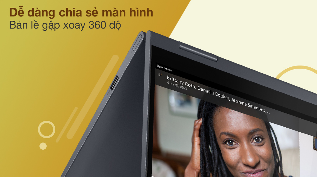 Đặc biệt, laptop được thiết kế bản lề gập xoay linh hoạt 360 độ cho phép người dùng thuận tiện trong việc chia sẻ thông tin với mọi người mà không cần xoay chuyển hướng rườm rà.